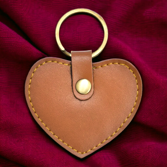 PERSONALISED STYLISH HEART KEYCHAIN - TAN